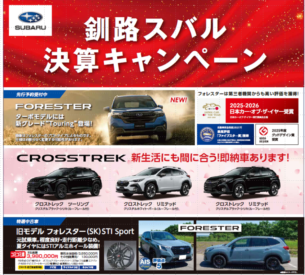 釧路スバルの決算キャンペーン開催